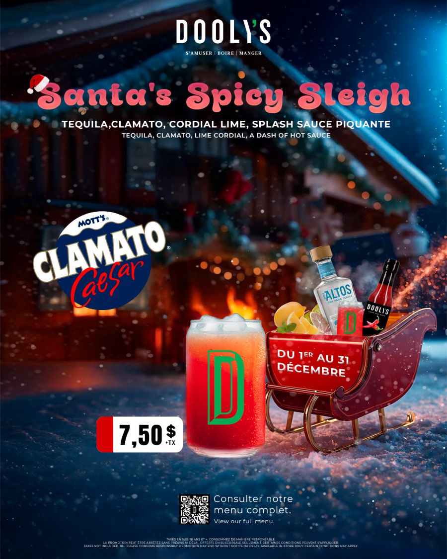 Feel the thrill of every game with your favorite teams in the welcoming setting of Dooly’s! Our Québec venue turns every sporting event into an immersive experience with strategically placed giant HD screens and premium sound systems.
