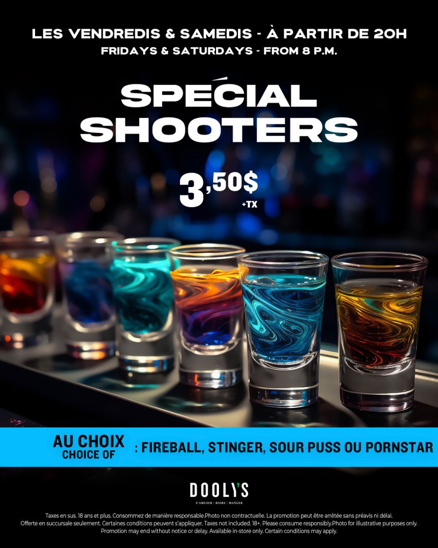 Spécial shooters à 3,50$/Shooter special at $3.50