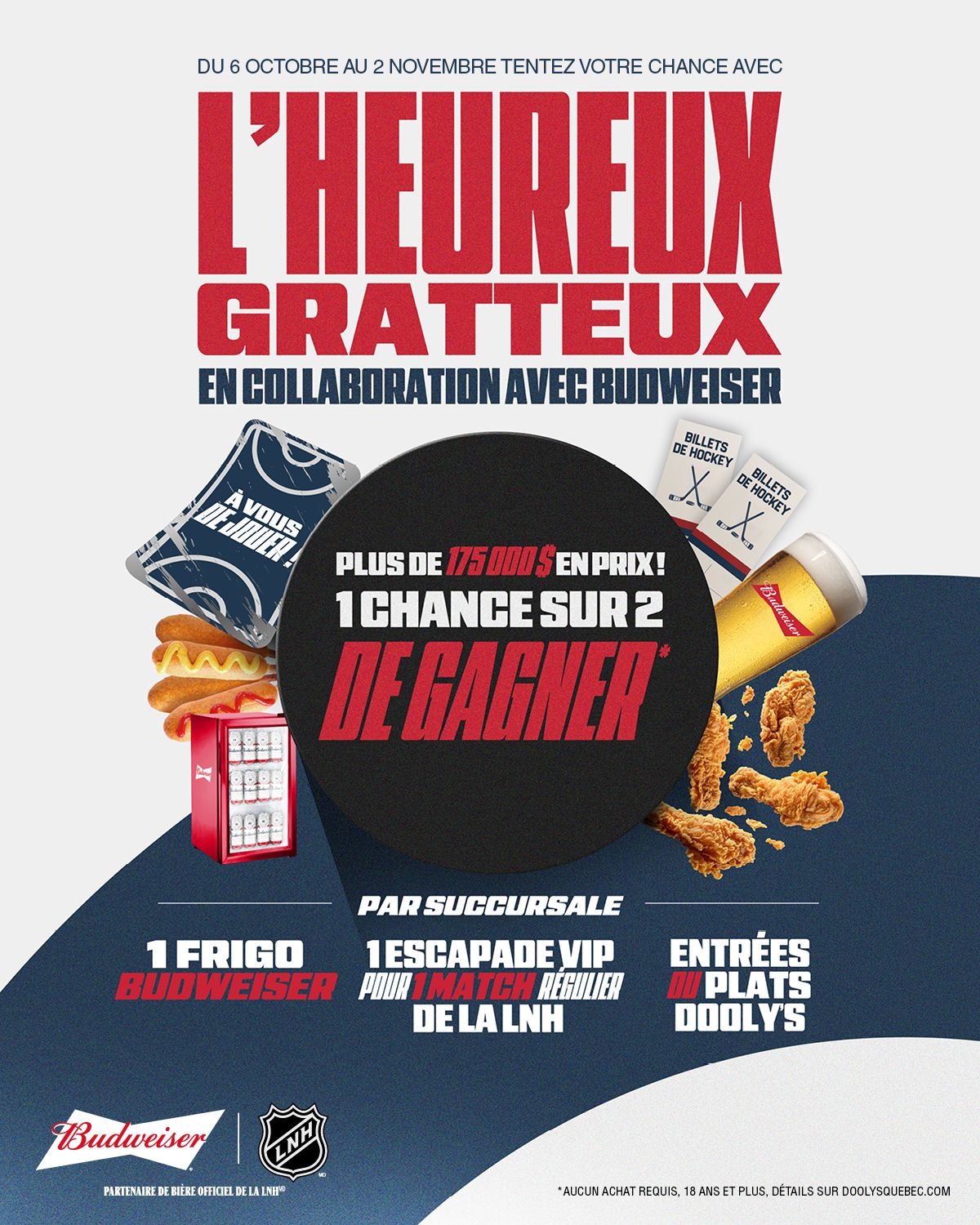 Promotion valable dans tous les Dooly’s (formule spécifique aux Dooly’s de Ste Anne de Beaupré, Laval et Chicoutimi Nord)